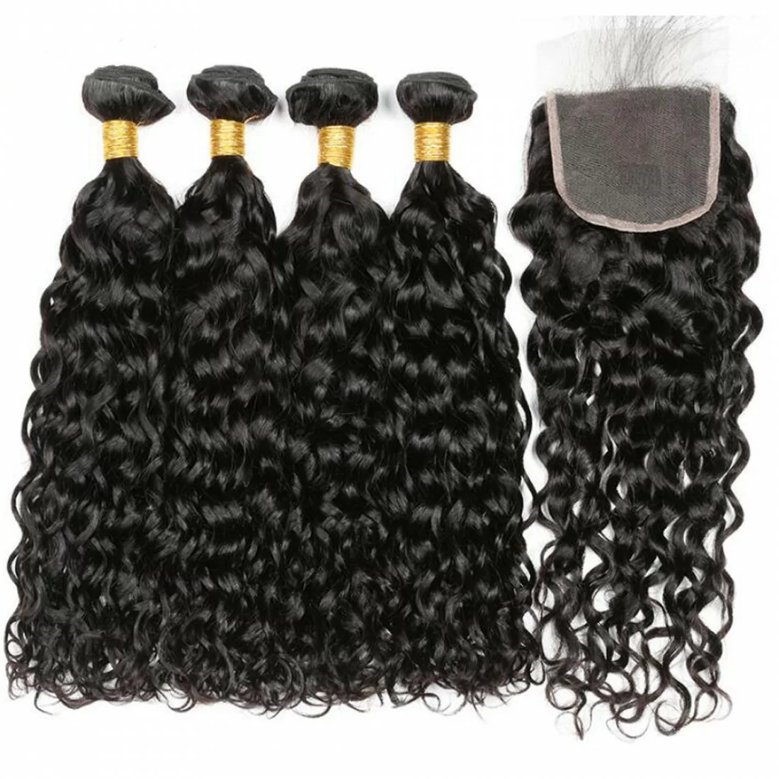 Product Description: 100% Remy Hair Water Wave Bundles with Lace Closure – 3 Bundles 100g Each
