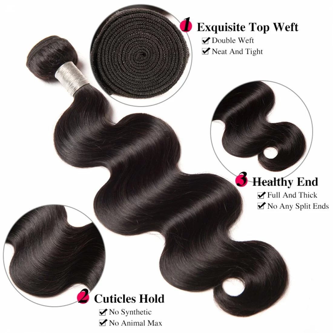 Product Description: Brazilian Virgin Hair Body Wave 3 Bundles Natural Color 100% Human Hair Extensions