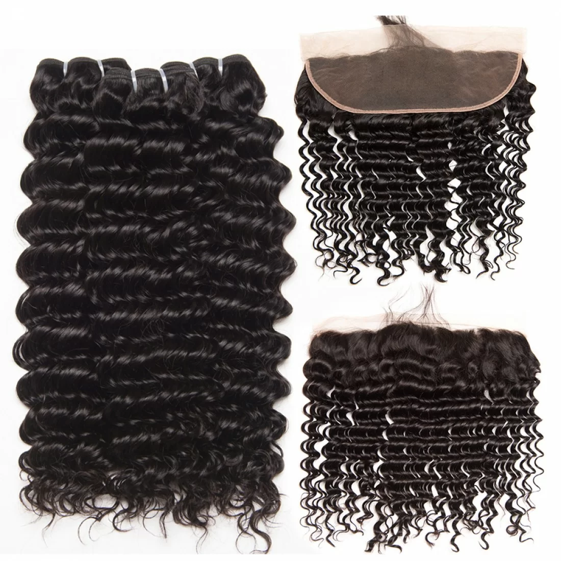 Brazilian Virgin Hair Deep Wave 3 Bundles With Frontal