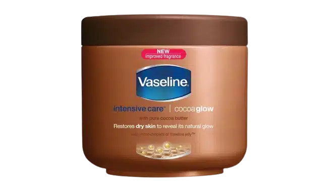 Vaseline Blueseal Cocoa Glow is made to give your skin deep moisture and a natural glow. It is enriched with pure cocoa butter, which softens rough and dry skin. The petroleum jelly formula locks in moisture to keep skin smooth and glowing all day.